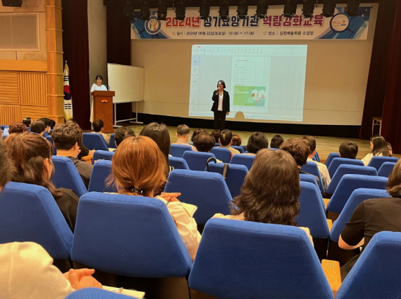 | 김천시재가장기 요양협회(회장 조현숙)는 지난 6월 22일 김천문화예술회관 소공연장에서 관내 노인 장기 요양 기관장과 사회복지사 100여 명을 대상으로 장기 요양 고시와 회계 교육을 했다.