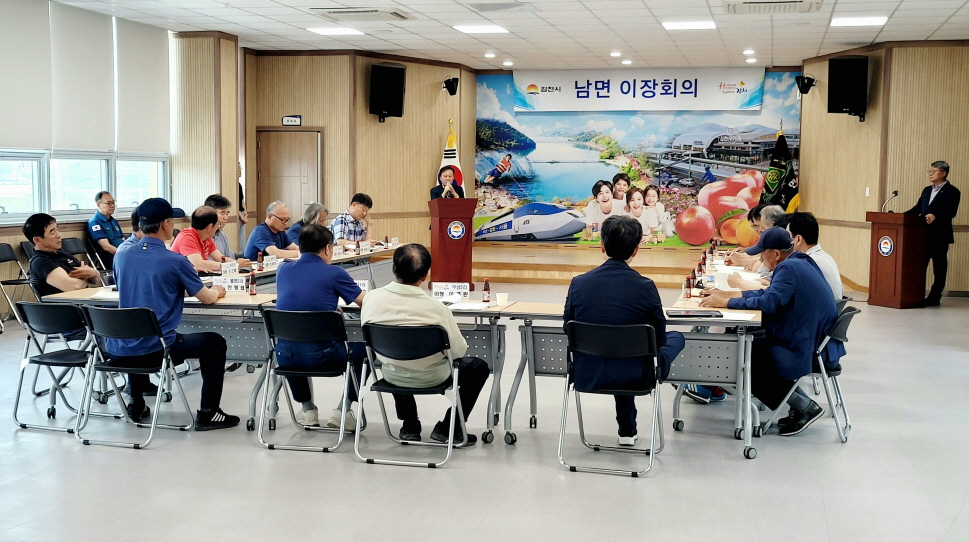 | 김천시 남면(면장 이광수)은 6월 21일 남면 행정복지센터 3층 대강당에서 각 마을 이장이 참석한 가운데 6월 이장 회의를 개최했다.