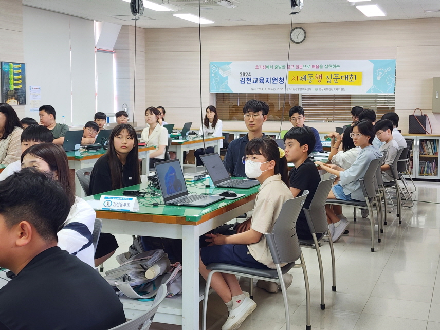 경상북도김천교육지원청(교육장 공현주)은 6월 26일에서 김천발명교육센터에서 초등학교 5~6학년으로 구성된 14팀(28명)을 대상으로 ‘2024 사제동행 질문대회’를 개최했다.