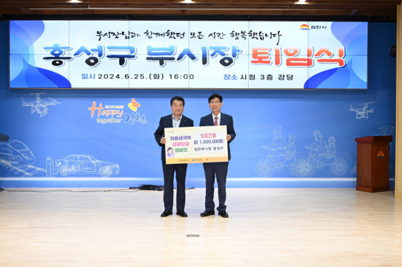 홍성구 김천시 부시장, 성금 전달로 더욱 영예로운 퇴임