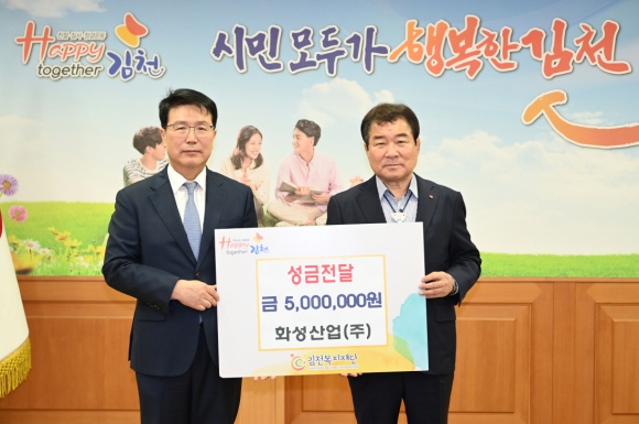 | 김천복지재단(이사장 김충섭)은 6월 27일 화성산업(주)(대표이사 이종원, 최진엽)이 성금 500만 원을 전달했다고 밝혔다.