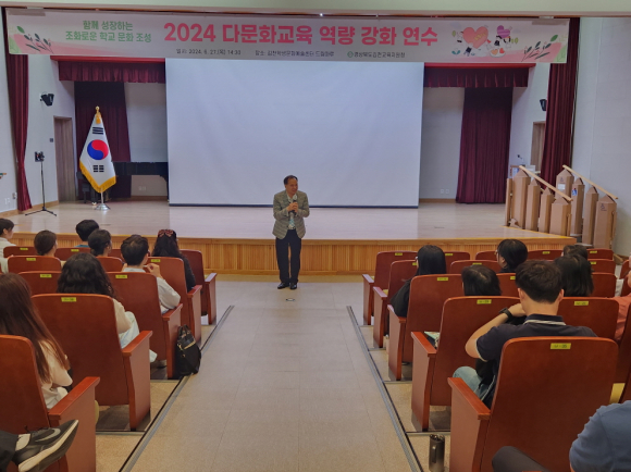 | 경상북도김천교육지원청(교육장 공현주)은 6월 27일 관내 유ㆍ초ㆍ중등 교원을 대상으로 ‘함께 성장하는 조화로운 학교 문화 조성을 위한 2024 다문화교육 역량 강화 연수’를 마련했다.