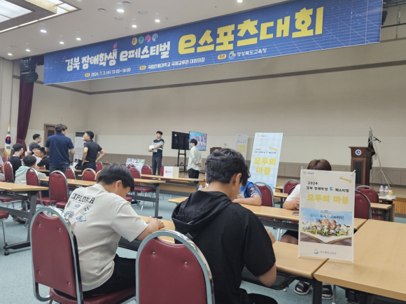 | 경북교육청(교육감 임종식)은 7월 3일 안동시에 있는 국립안동대학교 정보통신원과 국제교류관에서 13개 종목 110명의 학생과 인솔 교사, 지원 인력 등 총 200여 명이 참여한 가운데 ‘2024 경북 장애 학생 e페스티벌’을 개최했다.