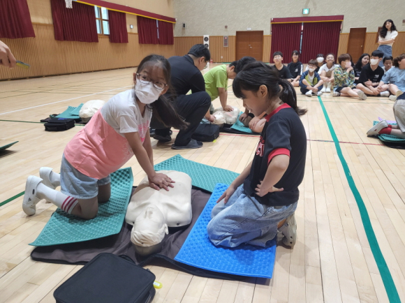 | 김천모암초등학교(교장 박춘택)는 4~6학년을 대상으로 7월 2일에 심폐소생술 및 응급처치교육을 실시하였다. 이 교육은 김천대학교 간호학과 교수를 초빙하여 4~5학년은 3교시, 6학년은 4교시에 본교 체육관에서 진행되었다.