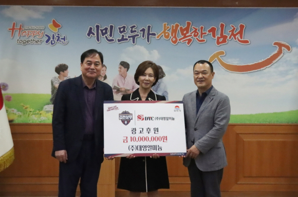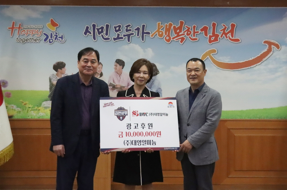 대영알미늄은 끊임없는 노력과 투자로 계속해서 성장을 거듭하였고, 2017년에 김천시 어모면에 김천공장을 설립하고 피막설비를 가동하기 시작했다. 현재는 산업용 소재, 전기 전자 소재, 자동차 선박 가공소재, 건축 및 내·외장소재 등 다양한 제품을 생산한다. 특히, 대영알미늄의 송란덕 부사장은 김천시가 고향으로 지역 프로스포츠 구단인 김천상무에 대한 애정을 드러내며 이번 광고 후원을 결심했다.