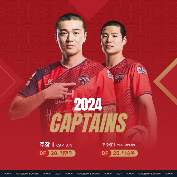 | 김천상무프로축구단(대표이사 배낙호, 국군체육부대장 김동열)의 김민덕과 박승욱이 각각 주장과 부주장으로 선임되었다. 두 선수는 평소 코칭스탭과 선수단에서 두터운 신망을 받고 있으며, 팀 내에서 축구를 대하는 자세와 병영생활에서도 모범을 보이며 정정용 감독의 신임을 받았다.