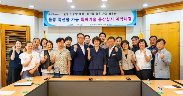 |  | | | ⓒ 김천내일신문 | | 경상북도농업기술원은 지난 7월19일 울릉 신공항 개항에 대비해 울릉군 내 업체들과 특산물 가공품 개발을 위한 가공 기술 이전 협약을 체결했다.