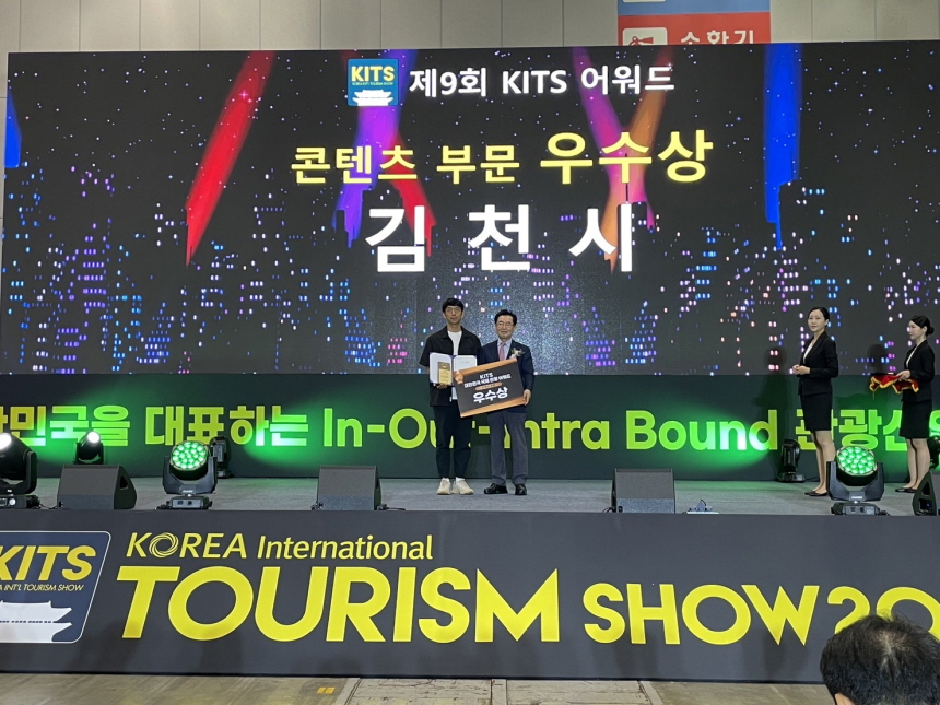 | 김천시는 7월 19일부터 4일간 열린『대한민국 국제관광박람회』에 참가해 기초자치단체 콘텐츠 부문에서 우수상을 받는 성과를 이뤘다.