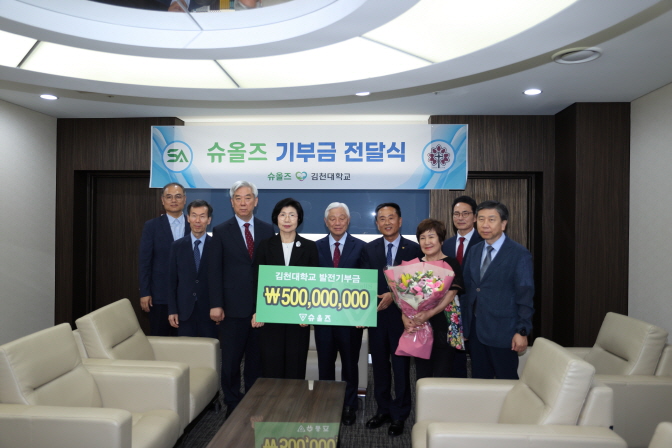 이번 기부는 슈올즈의 사회적 책임 활동의 일환으로, 김천대학교가 국가 발전에 기여할 수 있도록 지속적으로 지원할 계획임을 강조하였다. |