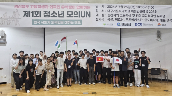 | 김천시(시장 김충섭)는 지난 7월 25일, 김천성의고등학교와 대구가톨릭대학교 다문화연구원이 공동주최하고, 김천시와 대구가톨릭대학교 경북미래라이프대학이 후원하는 제1회 경상북도 이주민 통합 청소년 모의UN을 성공적으로 개최했다고 밝혔다.