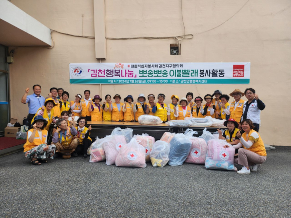 | 감천면 개나리 적십자봉사회는 지난 7월 26일 스스로 이불 빨래가 어려운 감천면 내 독거노인 30세대를 대상으로 찾아가는 이불 세탁 봉사활동을 했다.