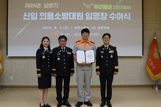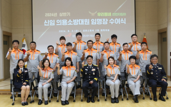 안영호 소방서장은 “의용소방대원 임명을 진심으로 축하드린다”며 “앞으로 화재, 각종 재난 현장뿐만 아니라 소방기관의 손길이 미치지 못하는 동네 구석구석에서 사명감과 봉사정신으로 지역사회에 헌신해 주시기 바란다”전했다. |  | | | ⓒ 김천내일신문 | | |
