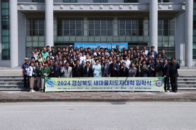 |  | | | ⓒ 김천내일신문 | | 김천대학교(총장 윤옥현)는 8월7일 대학본관 세미나실에서 “2024년 경상북도 새마을지도자대학” 입학식을 가졌다.