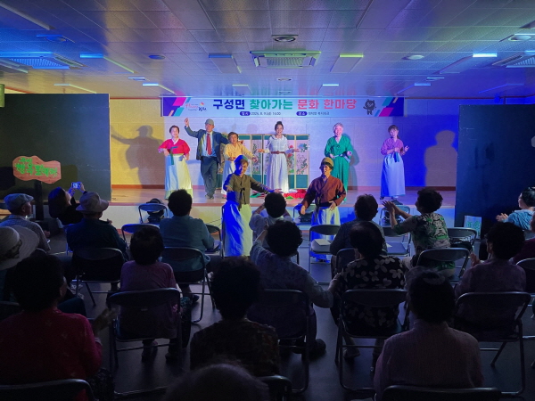 연극 『구성 행복 빨래터』는 옛 시골 아낙네들의 일상생활을 유머와 감동으로 풀어낸 이야기로, 지역 사회의 문화적 소통을 위해 준비됐다. 이날 대덕면민 50여 명이 참석한 가운데, 연극뿐 아니라 식전 공연으로 아코디언 및 색소폰 연주도 진행하여 많은 대덕면민의 관심을 모았다.
