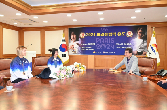 김천시, 파리올림픽 유도 허미미, 김지수 선수에 포상금 전달