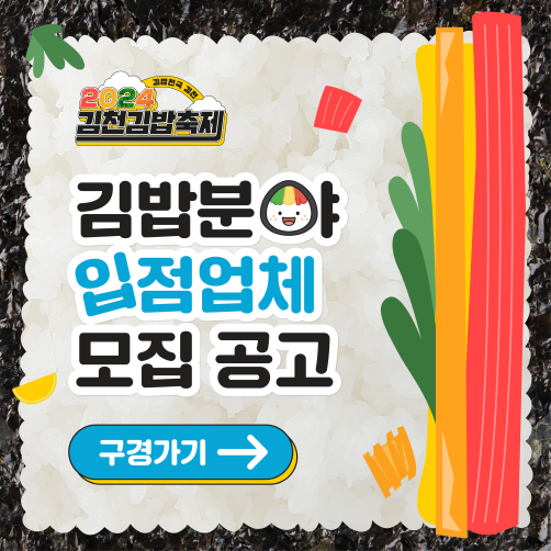 | 김천시는 10월 말 개최 예정인 『2024 김천김밥축제』참여업체를 8월 12일부터 9월 20일까지 모집한다고 밝혔다.