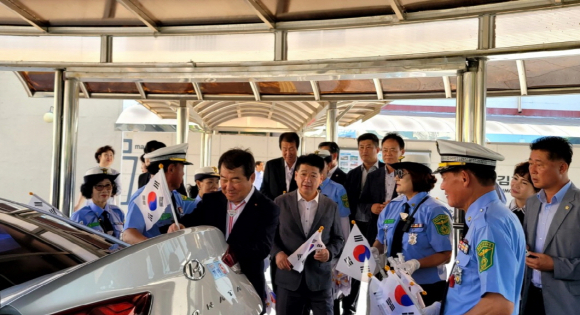 새마을교통봉사대김천지대, 79주년 광복절 차량 태극기 달아주기 펼쳐