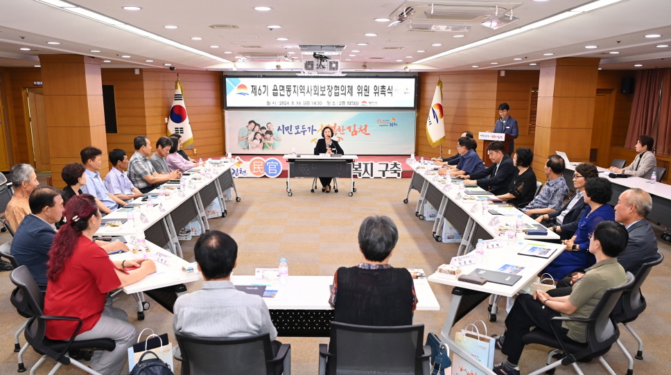 | 김천시지역사회보장협의체(위원장 김충섭, 공동위원장 이은직)는 지난 8월 16일 22개 읍면동 지역사회보장협의체 위원장과 관계자 50여 명이 참석한 가운데 『제6기 읍면동 지역사회보장협의체 위원 위촉식』을 개최했다.