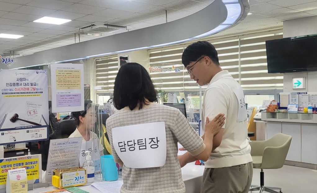 | 자산동(동장 이신기)에서는 8월 19일 중앙지구대 경찰관 3명의 협조하에 2024년 하반기 민원실 악성 민원에 대비한 모의훈련을 했다.