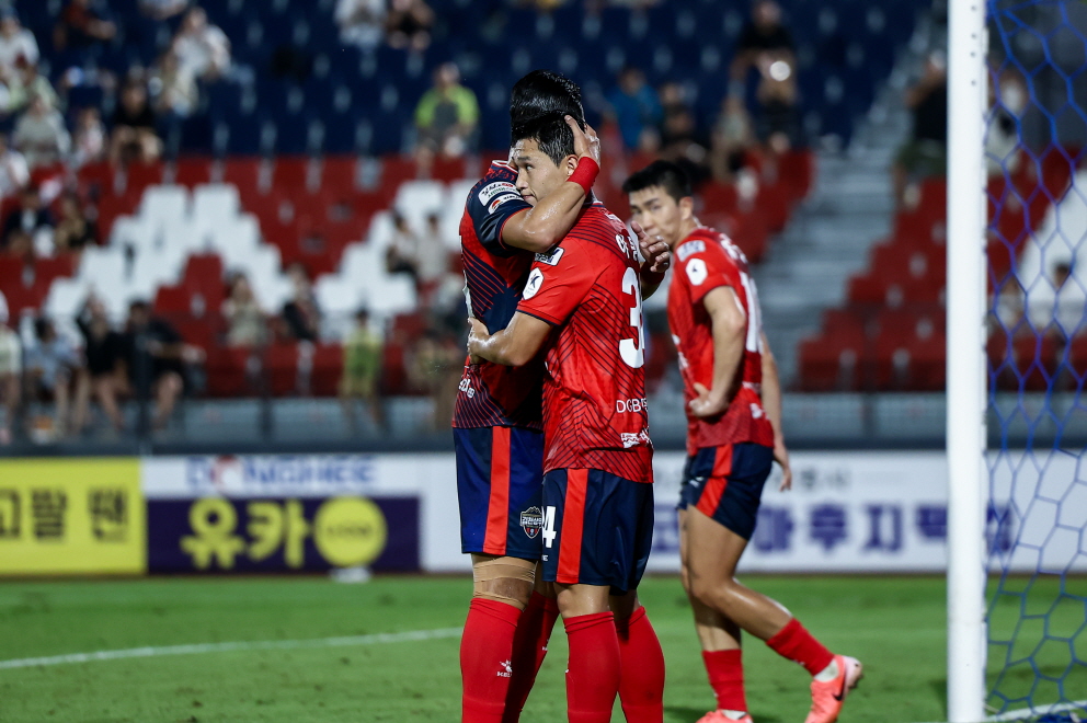 전반전에만 14개의 슈팅으로 대전을 두드린 김천상무는 후반 시작과 동시에 유강현이 추가 득점을 성공시키며 2대 0으로 앞서갔다. 골키퍼 김동헌의 활약도 빛났다. 후반 56분, 상대와 1대 1 위기에서 빠른 판단으로 각을 좁히며 공을 막았다. 이어진 코너킥에서는 안정적인 펀칭으로 공을 쳐 내며 수비에 성공했다. 대전의 공세가 계속된 후반 60분, 중거리 슛까지 막아내며 실점을 허용하지 않았다.