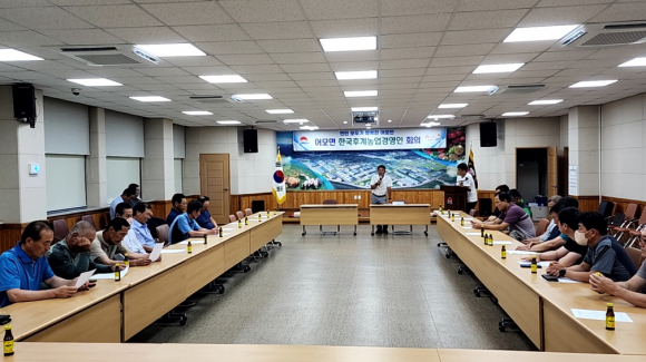 | 어모면(면장 김영호)에서는 8월 23일 어모면 행정복지센터 2층 회의실에서 어모면 한국후계농업경영인회의 정기 회의가 열렸다. 이번 회의에서는 어모면 한국후계농업경영인회 강수영 회장과 회원 30여명과 김영호 어모면장, 김창집 새김천농협 조합장이 참석한 가운데 과수 수확에 관한 정보 공유 및 공지사항을 전달하고, 다가오는 9월 3일 구미시 낙동강 체육공원에서 개최되는 제19회‘한국후계농업경영인 전국대회’참석에 대해 논의하는 시간을 가졌다.