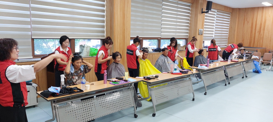 이날 미용사 자격증 보유하고 있는 김천 미용인 봉사단 회장 임옥경 외 9명은 마을 어르신 100여 명의 머리 손질을 도왔다. 또한 새마을부녀회 회원들은 이·미용을 끝낸 어르신들에게 떡 등 다과를 대접했다.