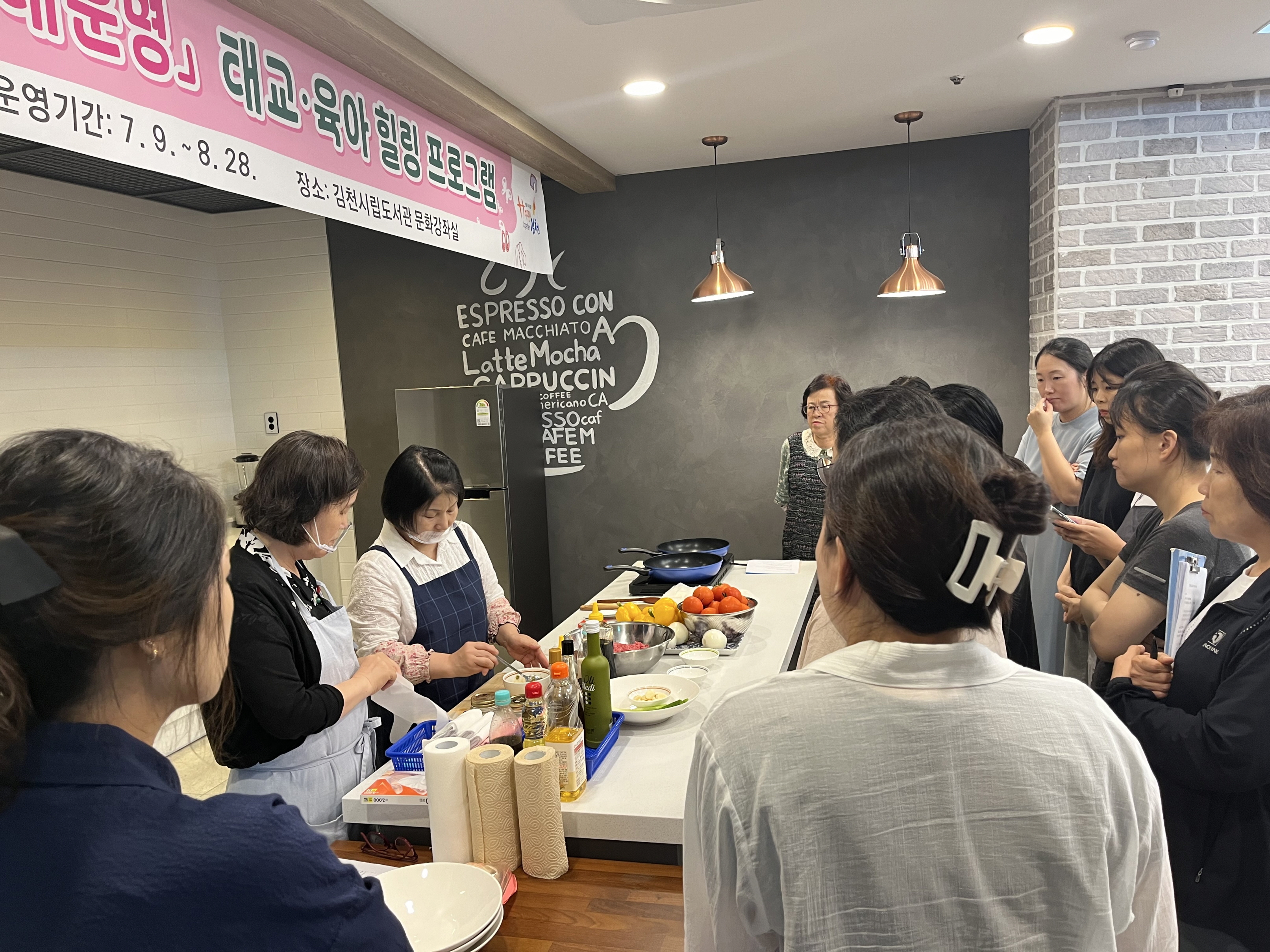 | 김천시립도서관(관장 이순영)은 지난 7월 9일부터 8월 28일까지 임신과 출산, 양육에 대한 올바른 정보를 공유하고 임산부와 육아 부모들의 정서적 안정을 도모하기 위한 「태교ㆍ육아 힐링 프로그램」을 운영했다고 밝혔다. 총 15회에 걸쳐 운영된 이번 프로그램은 아기와 임산부의 건강을 함께 지키는 다양한 건강 태교 요리법을 시작으로, 그림책으로 임산부의 마음을 돌보고 올바른 그림책 감상법과 읽기 법을 익히고, 주제별ㆍ상황별로 감정을 다스릴 수 있는 감정 관련 그림책까지 살펴보면서 건강한 출산과 양육을 돕는 수업으로 진행됐다.
