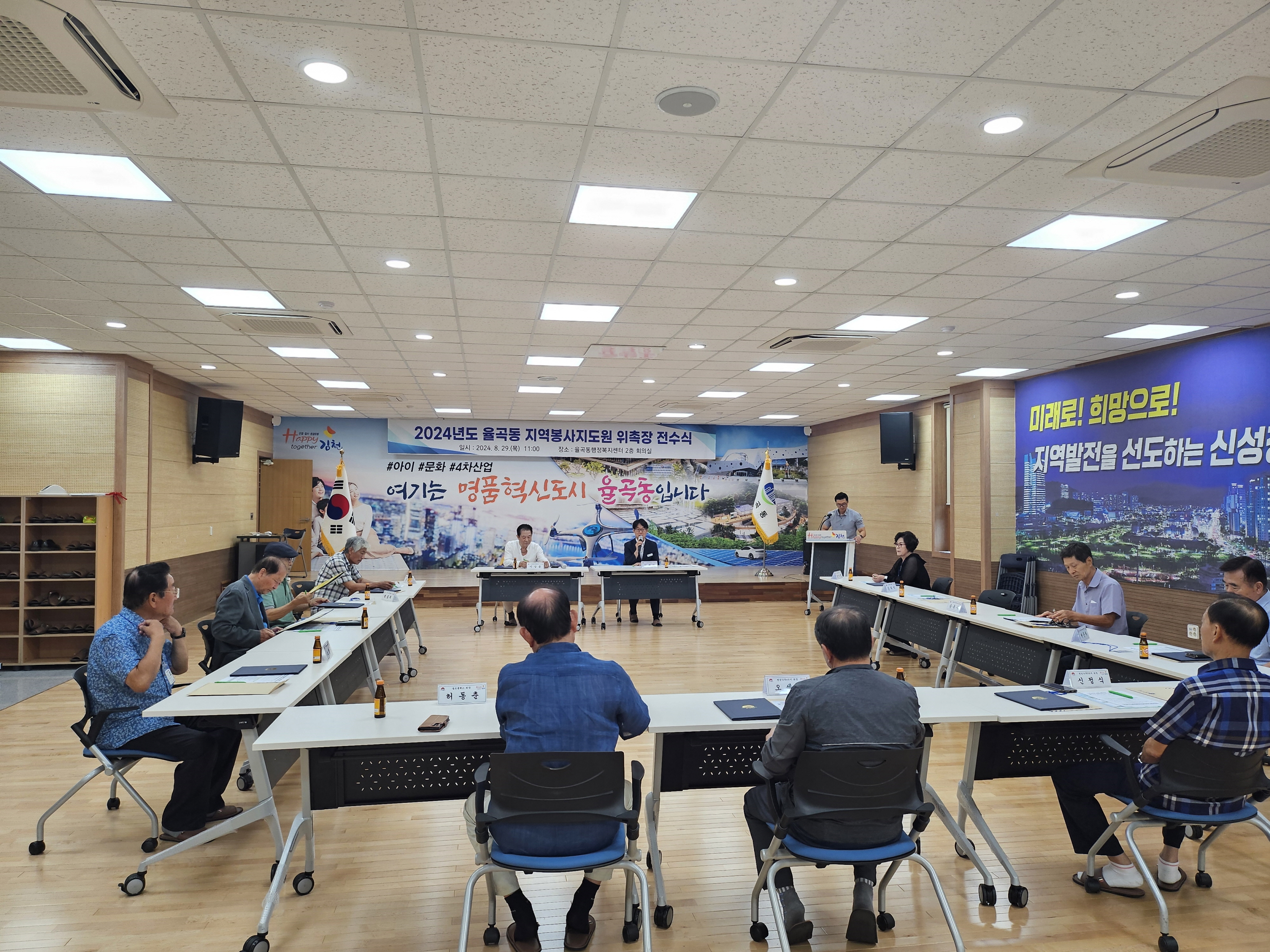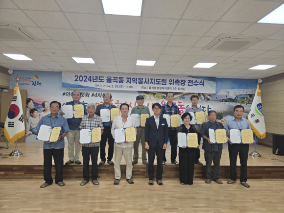 | 율곡동행정복지센터(동장 김병하)는 8월 29일 지역봉사지도원 12명이 참석한 가운데 「2024년도 율곡동 지역봉사지도원 위촉장 전수식」을 가졌다.