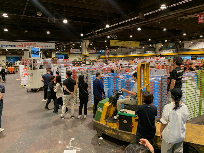 이날 견학은 22시에 김천을 출발하여 서울 가락도매시장을 방문하고 경매사와의 간담회를 통해 농산물 경매시스템과 전국 농산물의 유통체계에 대해 이해하는 기회를 가지고, 유통ㆍ판매현황 및 애로사항 등에 대한 의견을 들을 수 있었다. 또 새벽2시 시작되는 경매현장을 직접보며 유통체계를 경험하고 새벽4시 인천 남촌농산물도매시장 경매현장까지 둘러보았다.