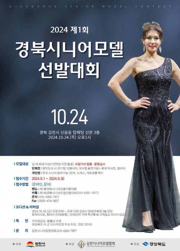 김천시니어모델협회(010-4302-7877)로 문의하면 더 자세한 정보를 얻을 수 있다. 경북의 시니어들이 새롭게 도전할 이번 모델 선발대회는 세대를 초월한 아름다움과 열정의 무대가 될 것이다.