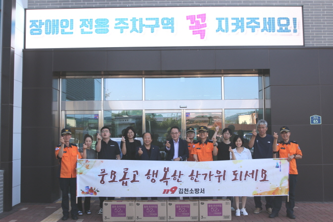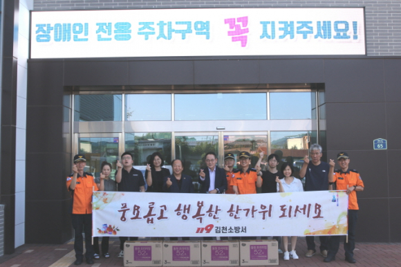 이 날 행사에는 박선하 도의원, 안영호 김천소방서장을 비롯한 김천소방서 직원들이 준비한 위문품을 전달하며 추석 명절 이웃사랑을 실천하고 다뜻한 마음을 전했다. 긴 연휴 기간의 화재 예방을 위해 소방시설 유지·관리 상태를 확인하고 화재 시 초기 대응방법을 지도하는 등 화재 안전 컨설팅도 실시했다.