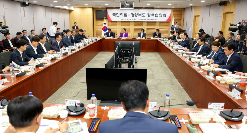 | 경상북도와 국민의힘은 9월 11일 국회의원회관에서 정책협의회를 열고 2025년 국가투자예산 확보 방안과 지역발전을 위한 정책현안에 대한 대응 전략을 논의했다.