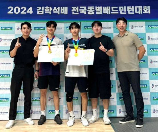 | 김천대(총장 윤옥현) 배드민턴부(감독 김민호)는 김학석배 연맹종별선수권대회 대학부 혼합복식에서 금메달 획득과 노경규 혼합복식 3위, 여자 대학부 단체전 김민경, 김수현, 황다현, 홍아인 3위 하였다고 9월 13일 밝혔다.