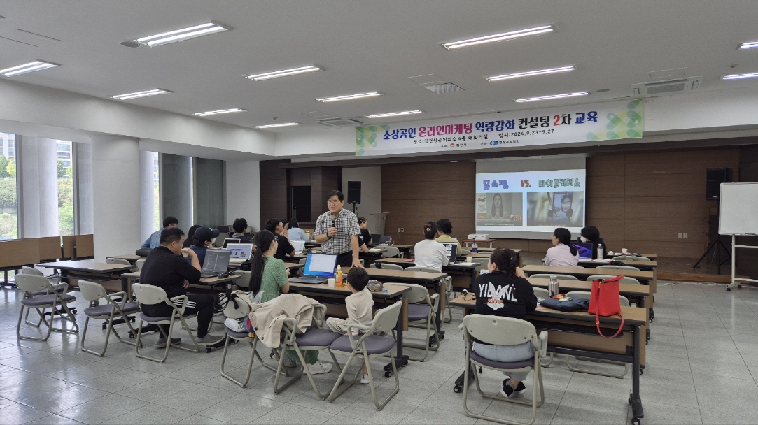 김천시가 주최하고 김천상공회의소 주관하는 이번 과정은 코로나 이후 비대면 소비가 활성화되면서 온라인 거래도 증가하고 있어 지역경제 활성화 차원에서 소상공인 온라인 마케팅 역량강화 컨설팅은 소상공인이나 예비창업자들에게 좋은 기회가 될 것으로 보인다. 이번 2차 「온라인 판매 플랫폼 활용」–라이브커머스 활용, 홈페이지제작, 네이버광고, SNS 및 블로그 마케팅 등을 총 5일간 20시간 과정으로 진행하며, 기본개념과 실습을 바탕으로 온라인 마케팅 실무에 바로 적용 할 수 있게 할 예정이다.