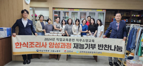 | 김천시 평생교육원 여성새로일하기센터 직업교육훈련 교육생들은 9월 23일 직접 만든 반찬을 율곡동 행정복지센터 나눔 냉장고에 기부하며 따뜻한 나눔을 실천했다.