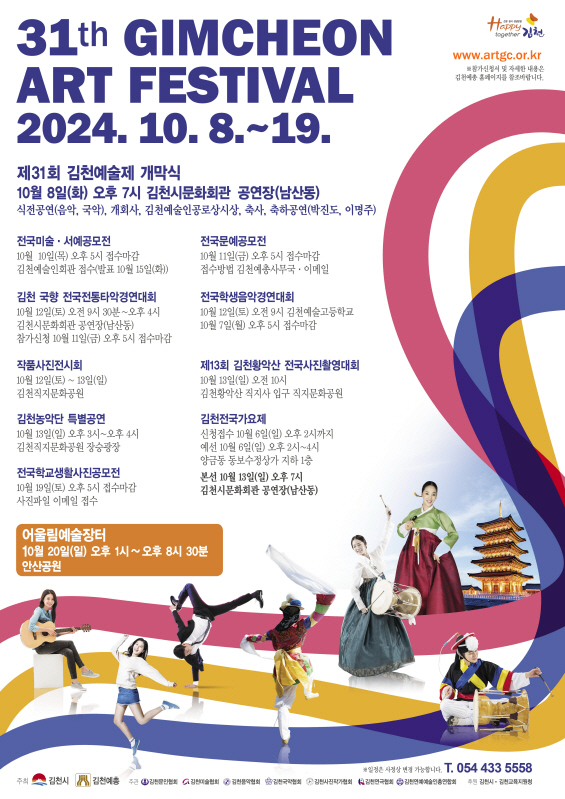 | 김천시(시장 김충섭)는 10월 8일부터 19일까지 12일간 김천시 일원에서 제31회 김천예술제를 개최한다고 밝혔다.