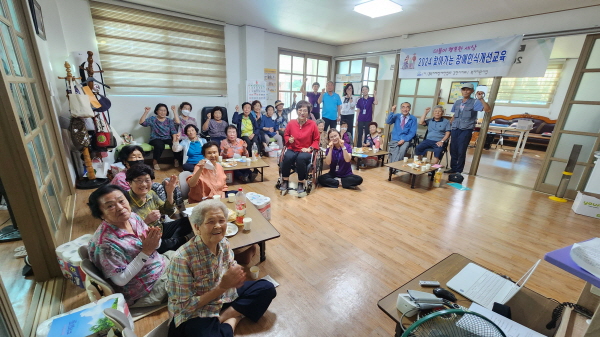 |  | | | ⓒ 김천내일신문 | | (사)경북지체장애인협회 김천시지회(지회장 김길영)는 9월24일 부곡동 문지왈 경로당에서 지역주민들 30여 명이 참여한 가운데 장애인식개선교육과 캠페인을 진행하였다.