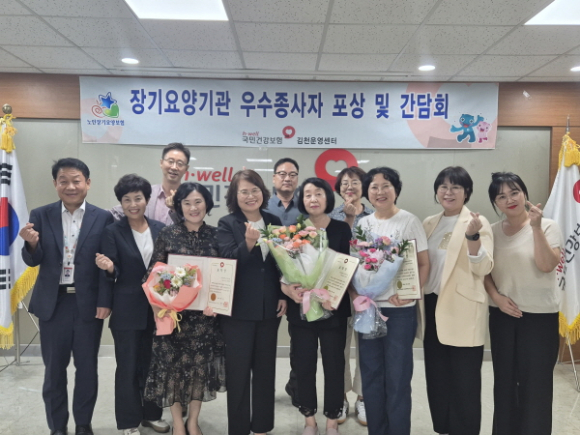 |  | | | ⓒ 김천내일신문 | | 국민건강보험공단 김천지사(지사장 민명자, 센터장 박봉준)는 24일 장기요양 서비스 질을 향상시키고 제도발전에 기여한 우수종사자를 선정해 표창을 수여했다고 24일 밝혔다.