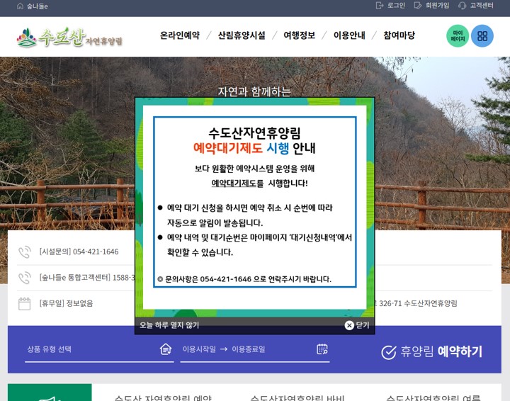 수도산자연휴양림은 인기 있는 숙소가 빠르게 마감되는 경우가 많아 이용자들이 원하는 시기에 예약을 하기 어려웠다. 그러나 이번에 도입된 예약대기제도를 통해 이용자들은 더 이상 매번 예약 현황을 확인할 필요 없이, 원하는 날짜에 대기를 신청하고 대기 순번에 따라 취소된 자리를 예약할 수 있게 되었다. 이는 수도산자연휴양림을 자주 이용하는 시민들에게 큰 편의를 제공할 것으로 기대된다.