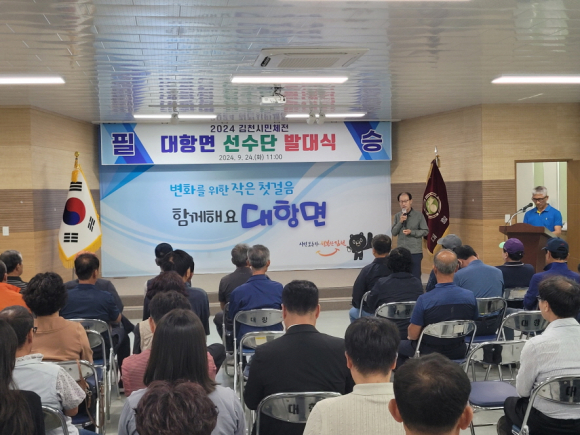 | 대항면 체육회(회장 김병용)는 9월 24일 대항면 행정복지센터 2층에서 김천시민체육대회 대항면 선수단 발대식을 개최했다.