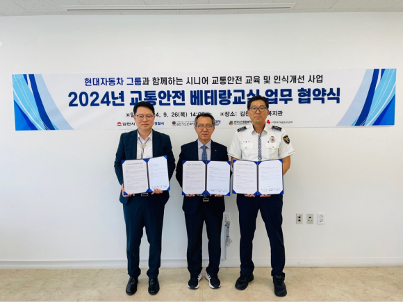 | 김천시(시장 김충섭)는 지난 9월 26일 노인복지관, 김천경찰서와 김천시노인건강문화센터 4층 회의실에서 어르신 교통안전의식 향상과 교통문화 정착을 위한 업무협약(MOU)을 체결했다.