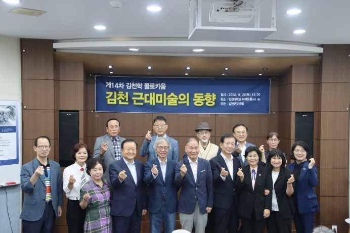 |  | | | ⓒ 김천내일신문 | | 김천 출신 교수들의 김천 연구 모임인 ‘김천학(金泉學) 콜로키움’의 제14차 연구 발표회가 김천대학교(총장 윤옥현)에서 열렸다고 9월28일 밝혔다. 이날 발표회는 김천대학교가 ‘김천학 연구’를 학문적으로나 문화적으로나 중시하고, 지역 대학으로서 김천학 발전을 지향하려는 윤옥현 총장의 뜻에 따라 김천대학에서 이루어졌다.