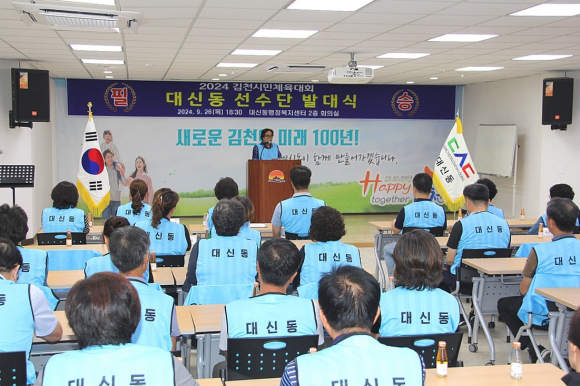 | 대신동 체육회(회장 최거동)는 지난 9월 26일 대신동 행정복지센터 2층 회의실에서 체육회 임원진, 각 기관단체장, 선수단 등 총 50여 명이 참석한 가운데 2024년 김천시민체육대회 대신동 선수단 발대식을 개최했다.