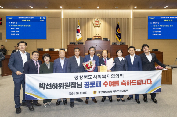 | 경상북도의회 박선하 의원(국민의 힘, 비례대표)이 경상북도사회복지협의회(회장 이상근)에서 공로패를 수상함*에 따라 10월 10일 전수식이 거행되었으며, 많은 관계자들이 참석해 축하의 뜻을 전했다. *본시상식 : 9. 27.(금), 포스코국제관(2024년 경상북도 사회복지대회)