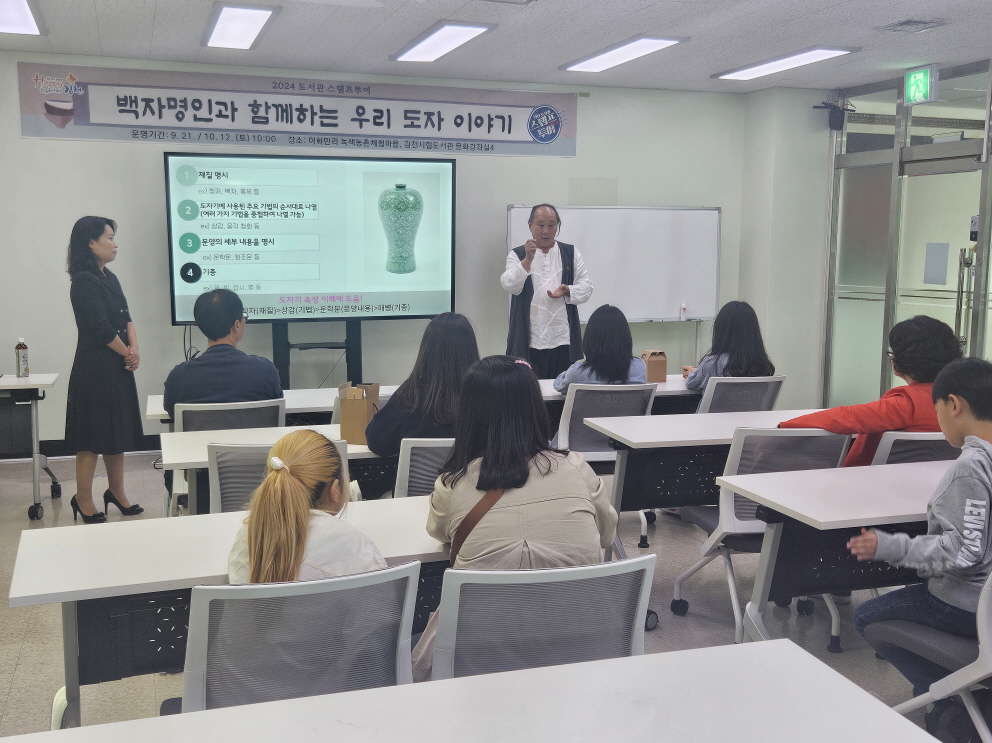 | 김천시립도서관(관장 이순영)은 9월 21일과 10월 12일 두 차례에 걸쳐 ‘백자명인과 함께 하는 우리 도자 이야기’ 프로그램을 진행했다.