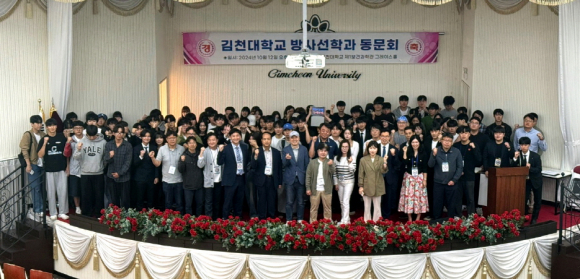 | 김천대학교(총장 윤옥현) 방사선학과(학과장 이보우)는 제1보건과학관 그레이스홀에서 2024년 방사선학과 동문회를 개최하였다고 10월 15일 밝혔다. 이날 전국 각지의 동문(회장 김영운) 및 미국 뉴욕에서 부부 방사선사로 근무하는 김철구, 강형숙 동문, 그리고 재학생들이 참석한 가운데 후배들을 위한 취업 특강 및 장학금 전달식을 진행하였다.