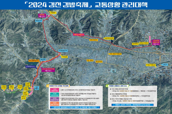 | 김천시(시장 김충섭)는 10월 26과 27일 개최되는 2024 김천 김밥축제의 성공적인 개최를 위해 축제기간 동안 차량통제를 실시한다고 밝혔다.
