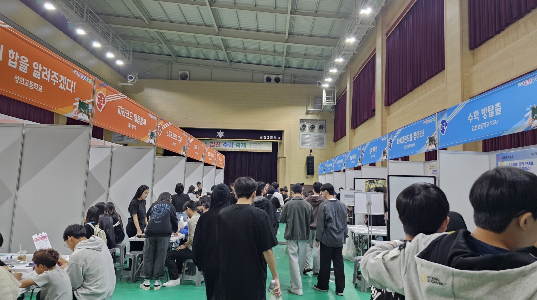 이번 김천수학축제는 현실의 여러 영역에서 마주치는 다양한 문제에서 수학이 어떻게 활용될 수 있는지를 직접 체험하고 이해할 수 있도록 다채로운 경험을 제공하고, 수학에 대한 흥미와 자신감을 키우는 것을 목적으로 김천교육지원청이 주최하고 김천고등학교가 주관학교로서 행사를 이끌었다. 주요 행사로는 초,중,고 14개 학교 28개 부스를 통한 수학체험활동과 방탈출프로그램, 학교 동아리별 이벤트 및 수학작품 전시, 체험 중간중간 학교별 밴드 및 댄스 공연으로 구성되어 있으며 부스체험 후 스티커를 획득하면 디저트 선물을 받아갈 수 있도록 구성하여 학생들이 재미있게 참여할 수 있을 것으로 기대된다.