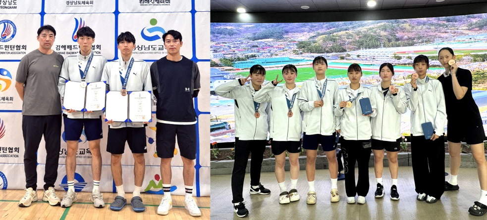 | 김천대(총장 윤옥현) 배드민턴부(감독 김민호)는 지난 7일부터 12일까지 경남 밀양에서 열린 제105호 전국체육대회 남자대학부 개인 복식 동메달(추진, 추찬)과 여자 대학부 단체전 동메달(여나영, 최은서, 김수현, 장은정, 이윤서, 이민서, 김민경)을 획득하였다고 16일 밝혔다.