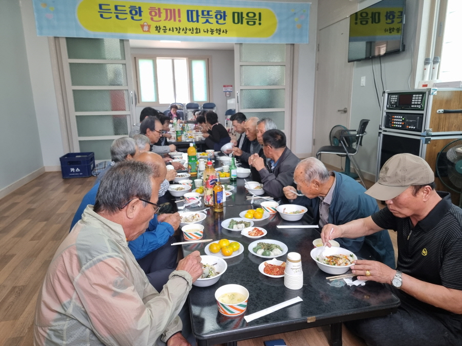 황금시장상인회 회원들은 어르신들이 맛있는 한 끼 식사를 대접하는 동시에 함께 황금시장 활성화 및 덕담을 나누며 즐거운 시간을 가졌다.